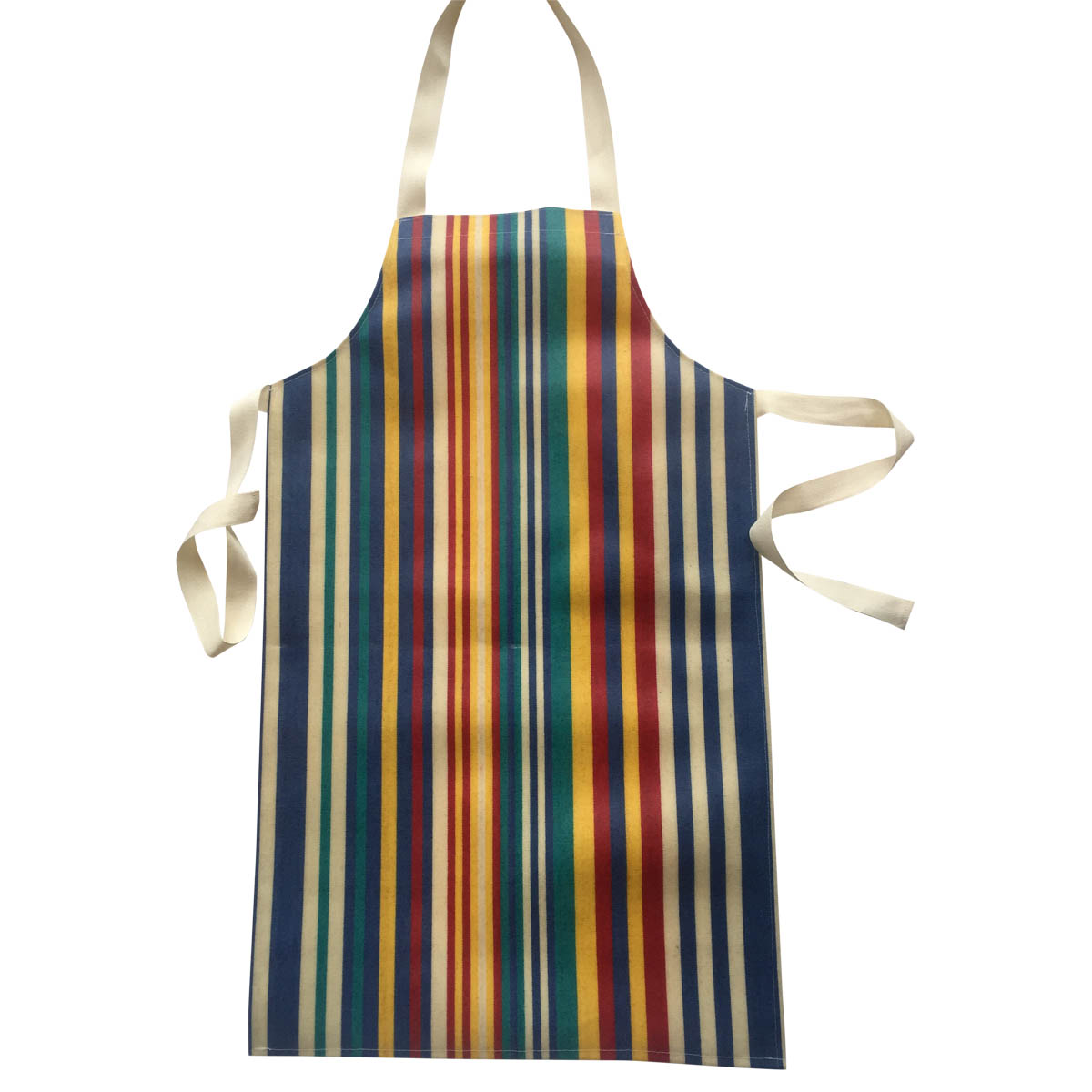 Striped Childs PVC Apron stripes of denim blue, turquoise, red and yellow