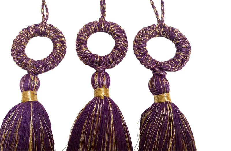 Gold, Purple Circle Top Tassels - Decorative Tassels for Christmas Trees