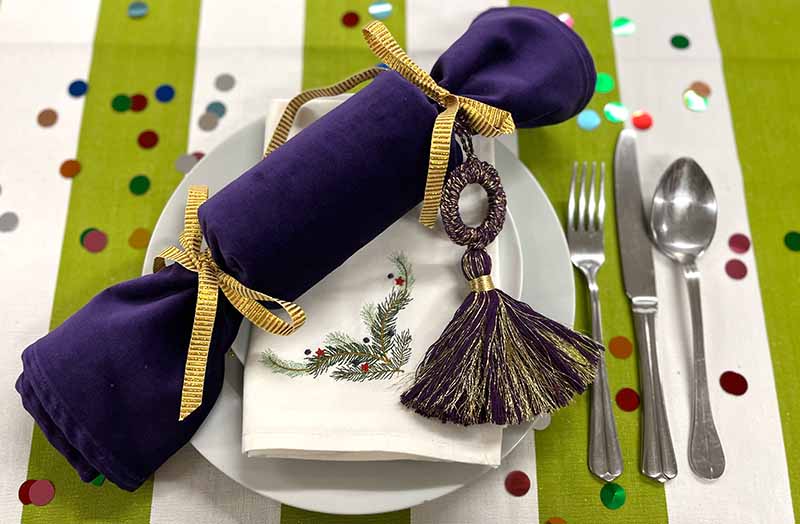 Exclusive and unusual purple and gold tassels, a Stripes Company design for any other special occasion.