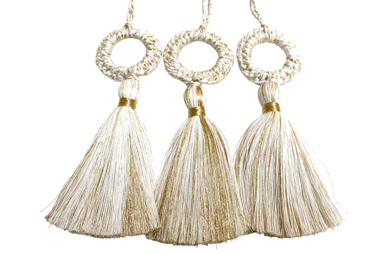 Gold, White Circle Top Tassels - Decorative Tassels for Christmas Trees