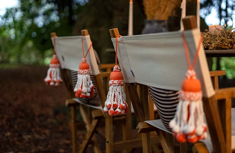 Intricately hand woven 100% cotton large hanging macrame tassels with approx 20 small orange and white pompoms.