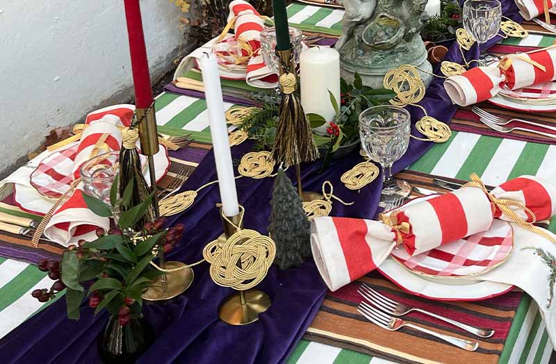 The Stripes Company have designed some exquisite woven love knot garland decorations in sophisticated gold thread.