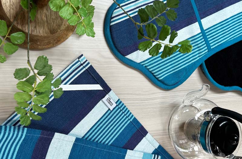 We have striped aprons and tea towels which match and co-ordinate