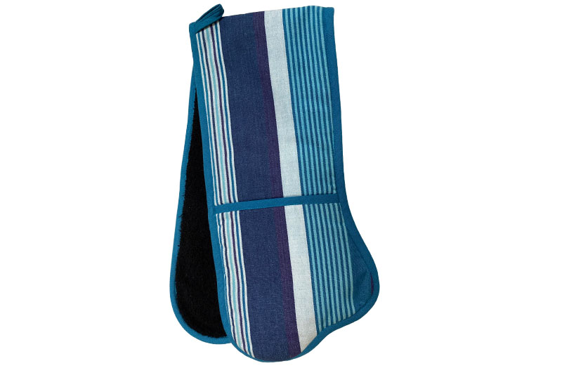 Please note: as some of the stripe fabrics used to make our oven gloves have broad repeats, the colours/stripes on the product images shown may differ slightly.