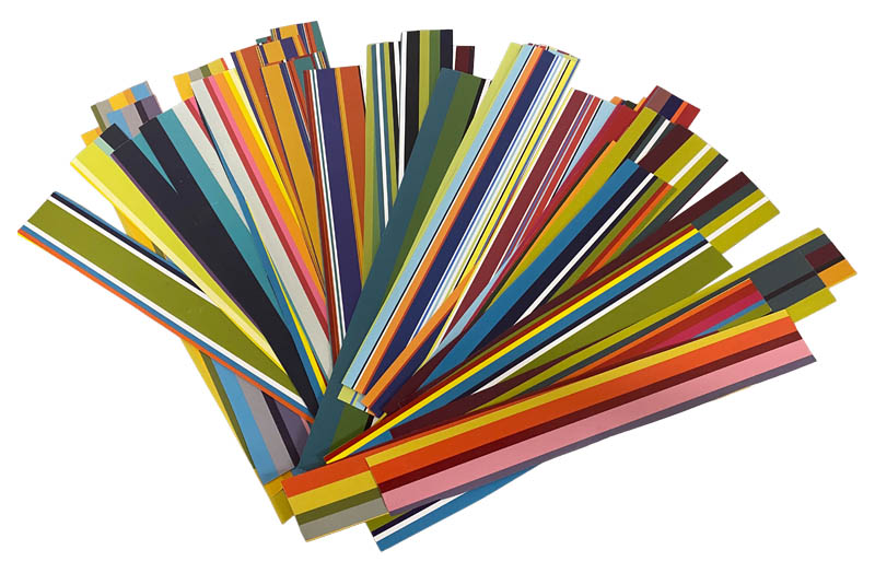 Each strip measures 23cm x 3.25cms approx - a huge assortment of stripes - very few are duplicated in a pack.