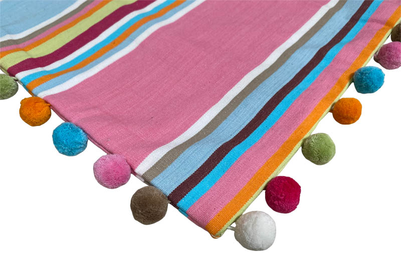 100% woven cotton fabric and pompoms