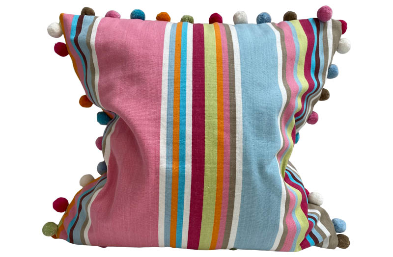 Striped Pompom Cushion - Cricket Pink Stripe