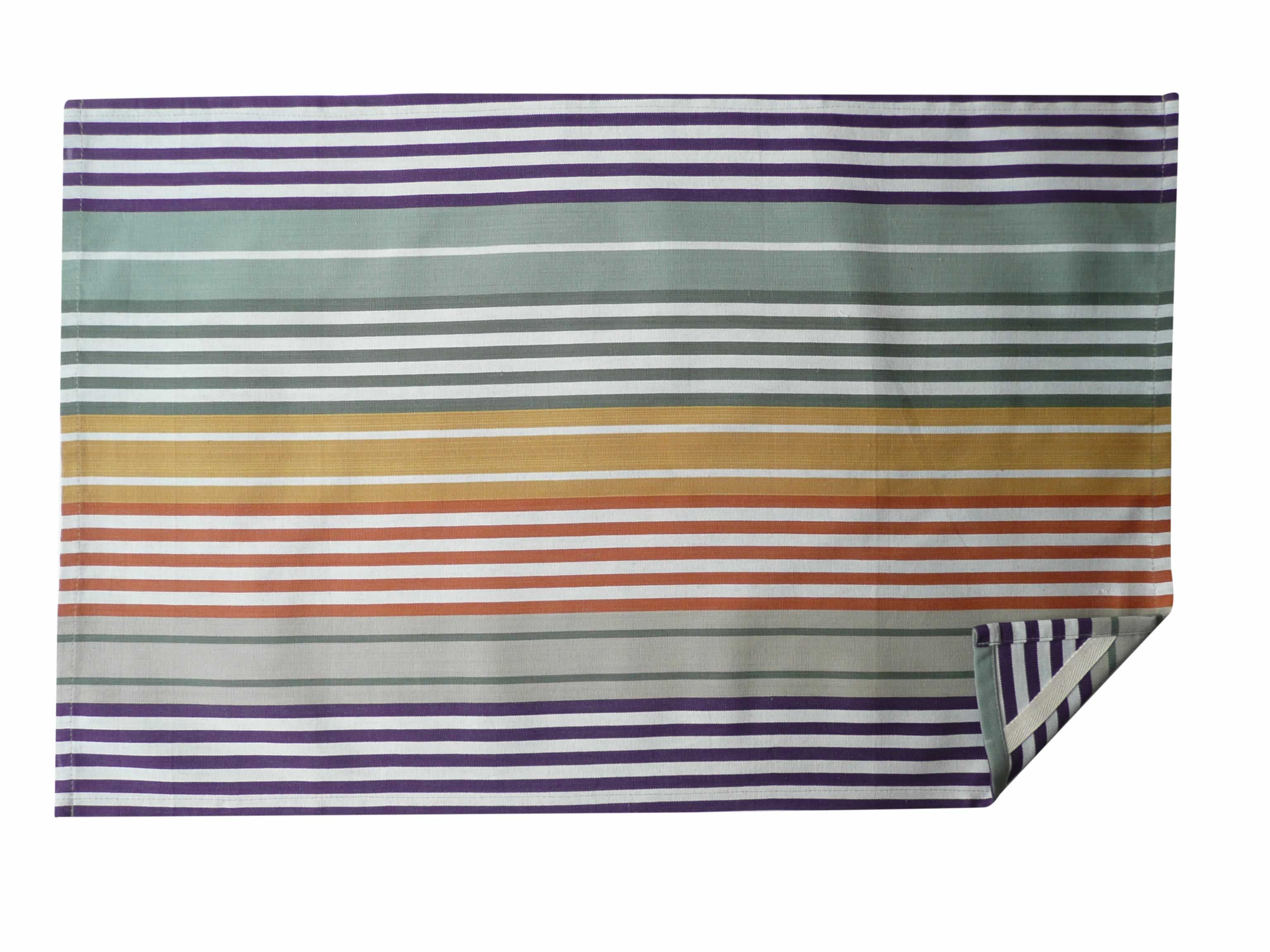 Sage green, purple, mustard - rust, white stripes